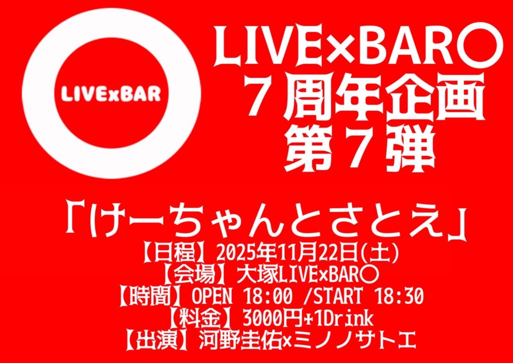 ライブ 2025.11.22(土)関東 〇7周年企画第7弾「けーちゃんとさとえ」 会場:大塚LIVE×BAR〇(maru) open 18:00 / start 18:30 charge¥3,000(1drink別) -出演- 河野圭佑 ミノノサトエ ツイート チケットを予約する